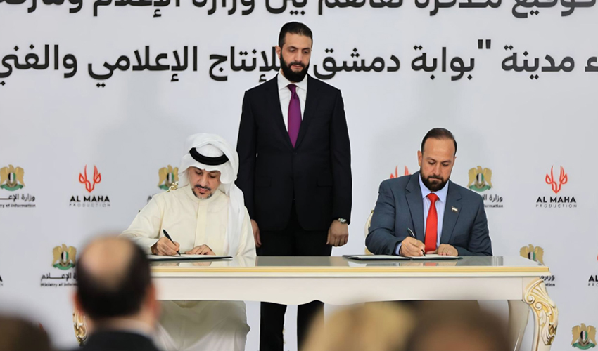 بحضور الرئيس السوري “أحمد الشرع”، تم توقيع مذكرة تفاهم بين وزارة الإعلام وشركة المها الدولية، لإنشاء مدينة “بوابة دمشق” للإنتاج الإعلامي والفني في سوريا.