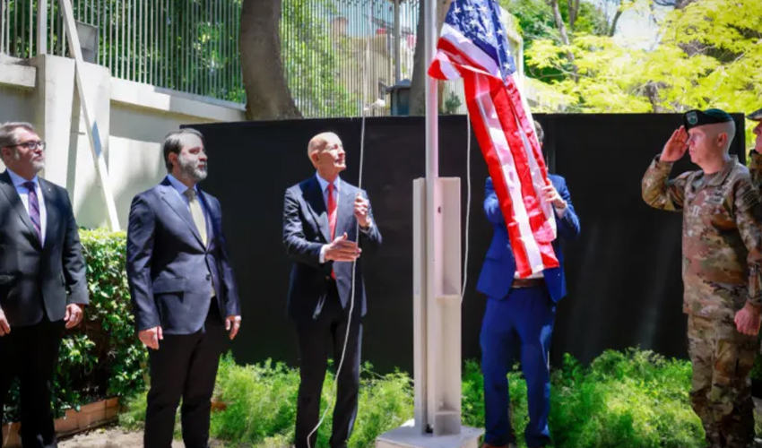 أكدت وزارة الخارجية الأمريكية أن رفع العلم الأمريكي لأول مرة منذ 2012 فوق دار إقامة السفير في العاصمة دمشق، بحضور المبعوث الأمريكي الخاص إلى سوريا، توماس باراك يمثل “لحظةً فارقةً”.