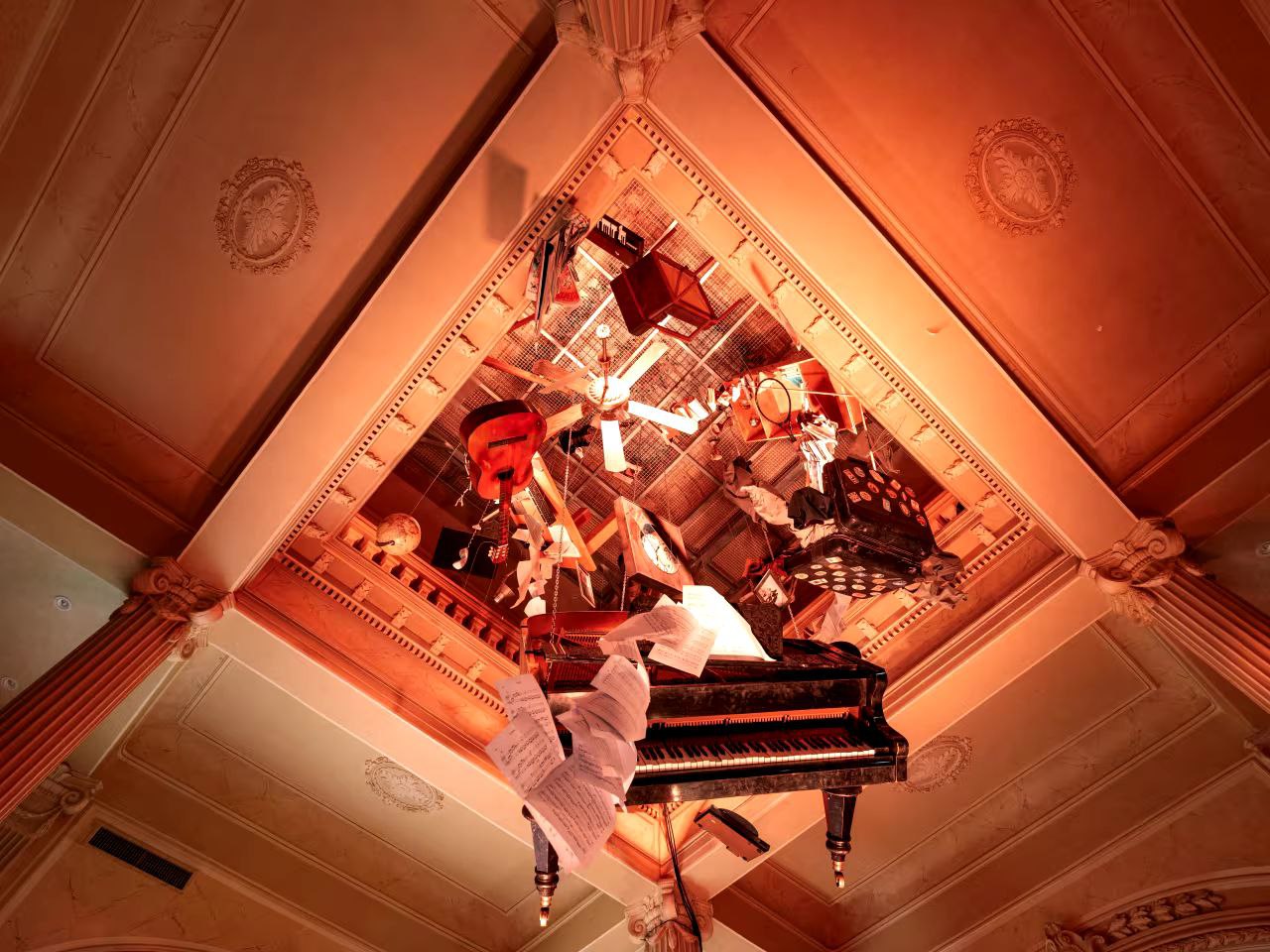 فور دخولك إلى فيلا عودة بمنطقة الأشرفية في العاصمة اللبنانية بيروت، لا يسعك إلا أن تلتفت إلى البيانو المعلّق في السقف والأغراض المتطايرة في الهواء، لتكتشف أنها جزء من استوديو الموسيقي اللبناني خالد مزنّر، الذي تحطم أثناء انفجار مرفأ بيروت في الرابع من أغسطس/آب 2020، في مشهد يتناغم مع المقطوعة الموسيقية “نبض” التي ألفها مزنّر مباشرة بعد الانفجار.