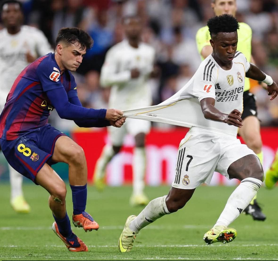 ومع دخول المباراة في منعطفها الأخير نشط برشلونة باحثاً عن إدراك التعادل إلا أن هجمات الضيوف افتقدت للفاعلية تماماً بل أن بيدري لاعب وسط برشلونة تلقى البطاقة الحمراء إثر التدخل العنيف على تشواميني، فانتهت المباراة على وقع فوز مستحق للفريق الملكي.