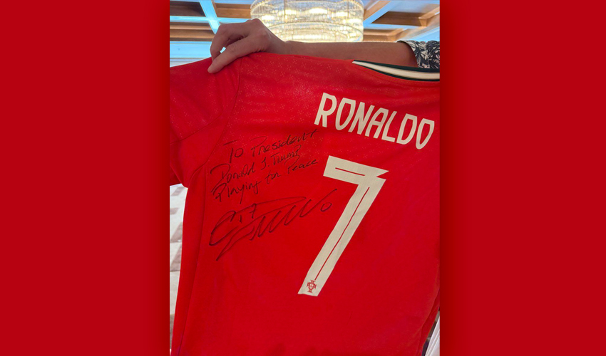 رونالدو وجّه رسالة خاصة لترامب في ظل الصراع الإسرائيلي الإيراني، حيث أرفق توقيعه على القميص بعبارة للرئيس الأمريكي قال فيه: