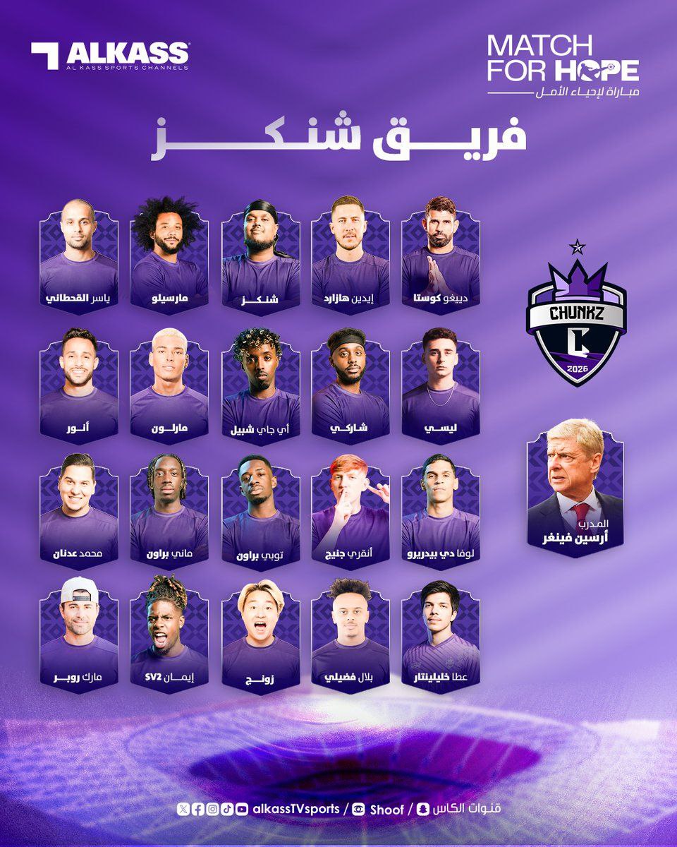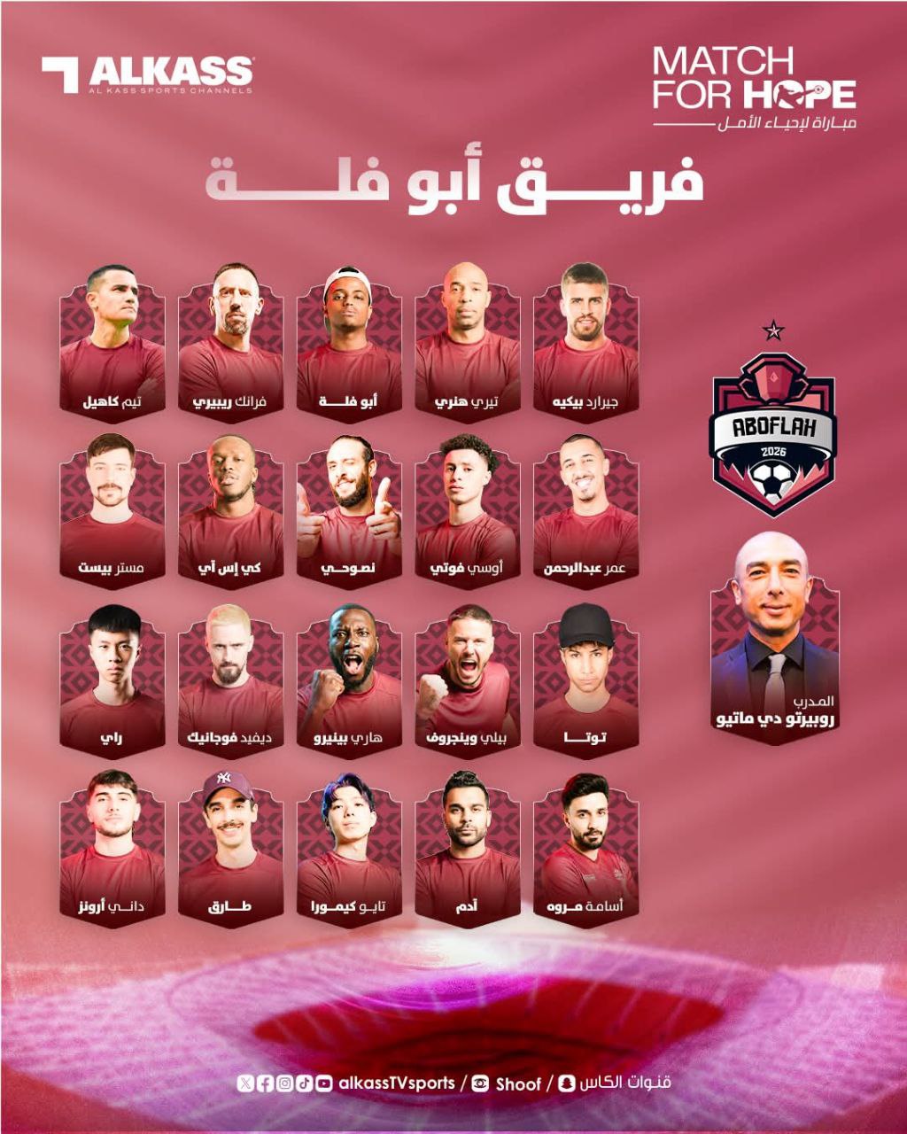 وأعلنت منصة كيو لايف، التابعة لمكتب الإعلام الدولي لدولة قطر، عن القائمة الكاملة والنهائية للمشاركين في هذه المواجهة المرتقبة، والتي تجمع بين نخبة من أساطير كرة القدم العالمية، وأشهر صناع المحتوى الرقمي، بالإضافة إلى فنانين عالميين حائزين على جوائز مرموقة، في تظاهرة إنسانية تهدف لدعم التعليم حول العالم.