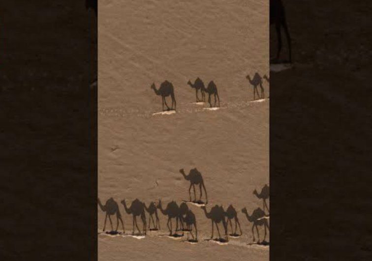 في قلب صحراء سلطنة عُمان، يتجلّى مشهد جوي مهيب لظلال قطيع من الإبل يسير بتأنٍّ فوق الرمال الذهبية الناعمة، في...