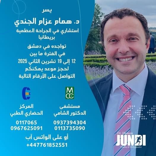سيتواجد الدكتور همام عزام الجندي الاستشاري في الجراحة العظمية في مشفى Stepping Hill Hospital في مدينة مانشستر - بريطانيا، والأخصائي...